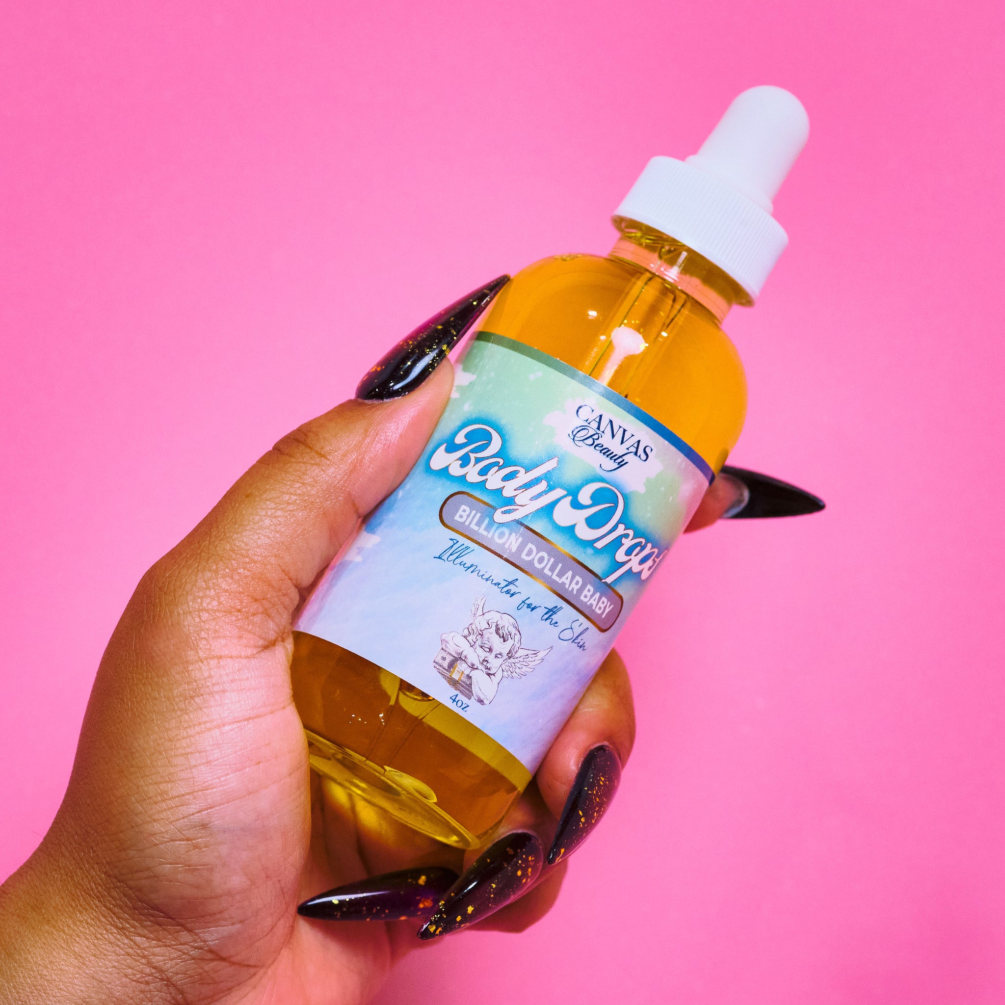 Enjoy Body Drops from Canvas Beauty. Use to hydrate and seal moisturizer into the skin. Apply after shower or throughout the day. Rub in thoroughly and illuminate the world.