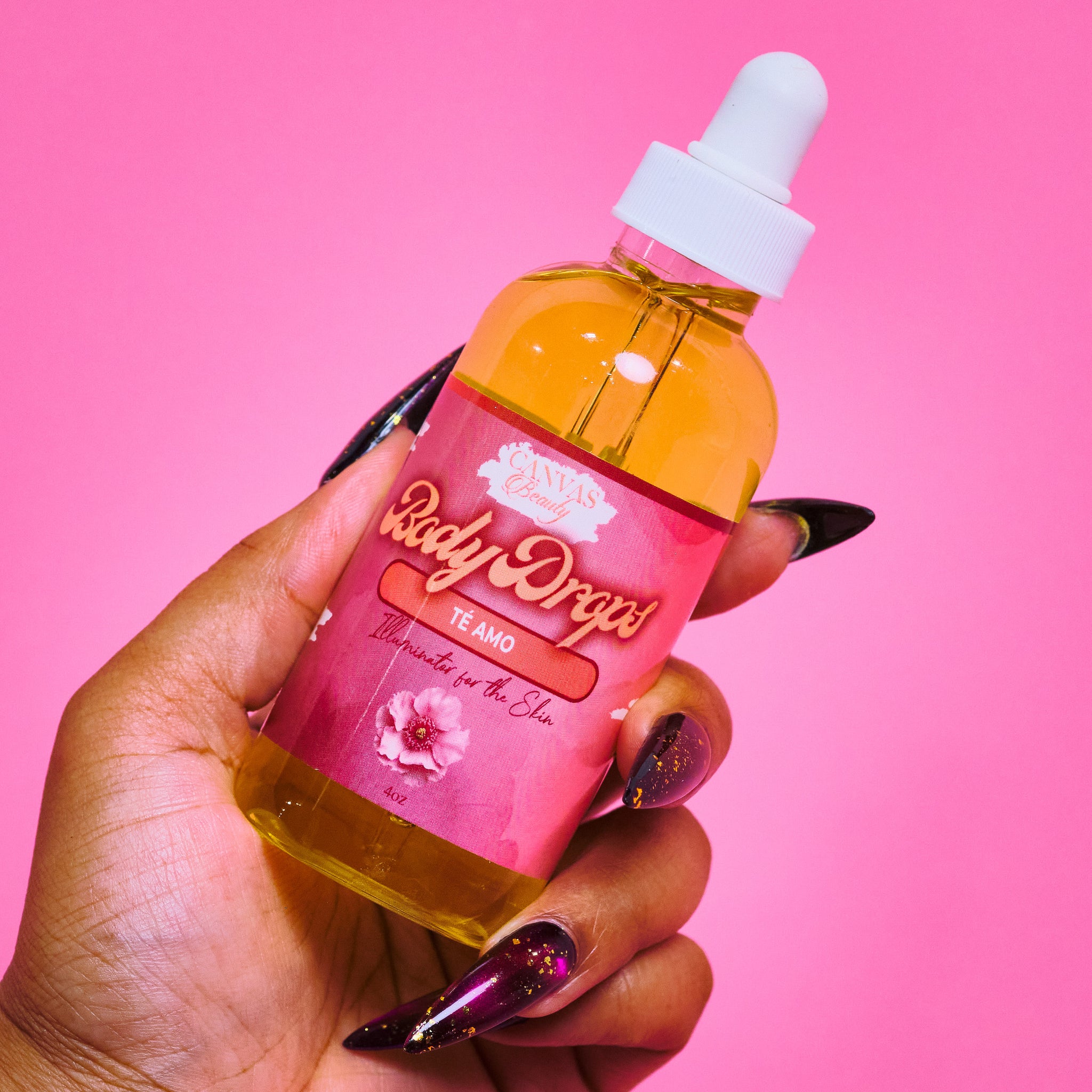 Enjoy Body Drops from Canvas Beauty. Use to hydrate and seal moisturizer into the skin. Apply after shower or throughout the day. Rub in thoroughly and illuminate the world.